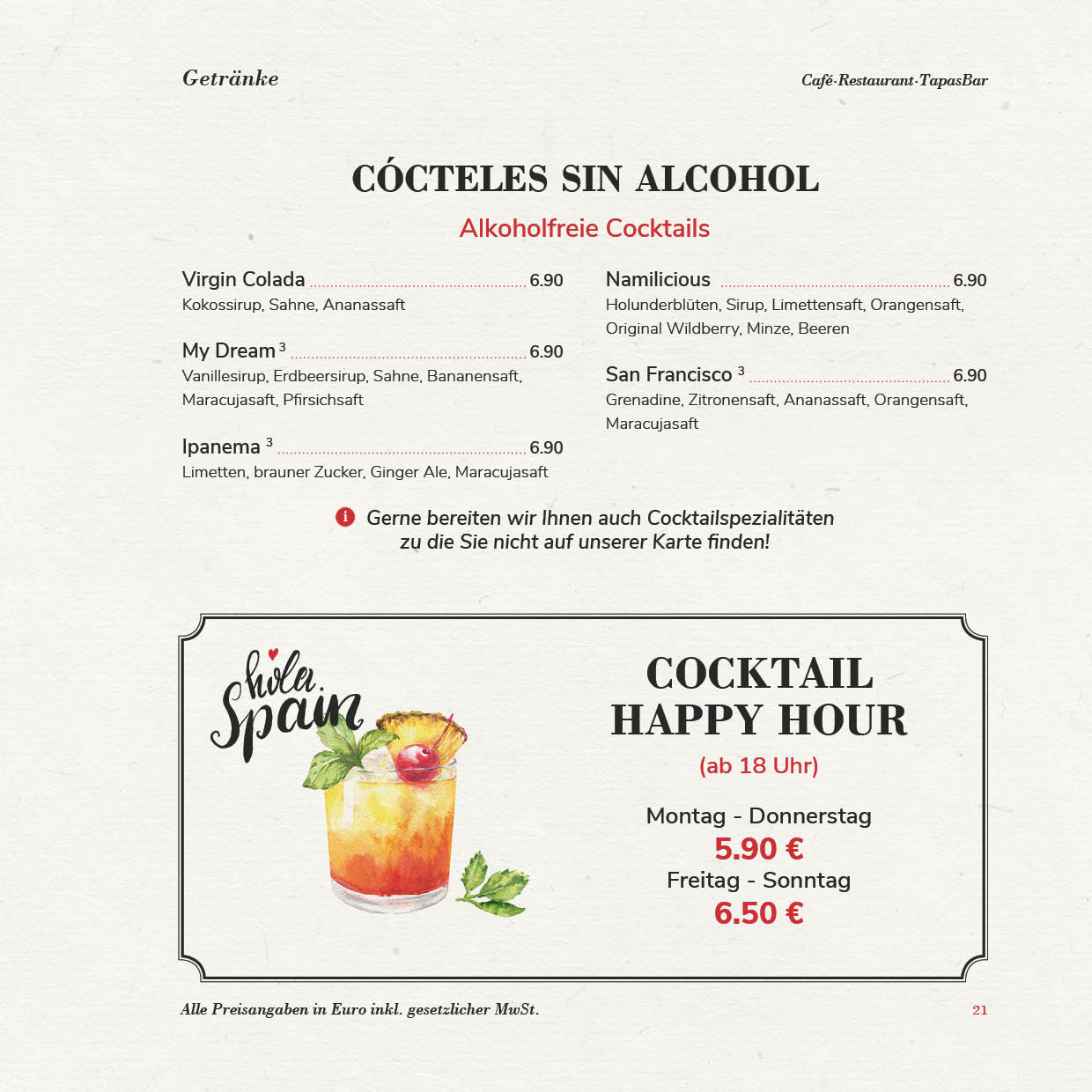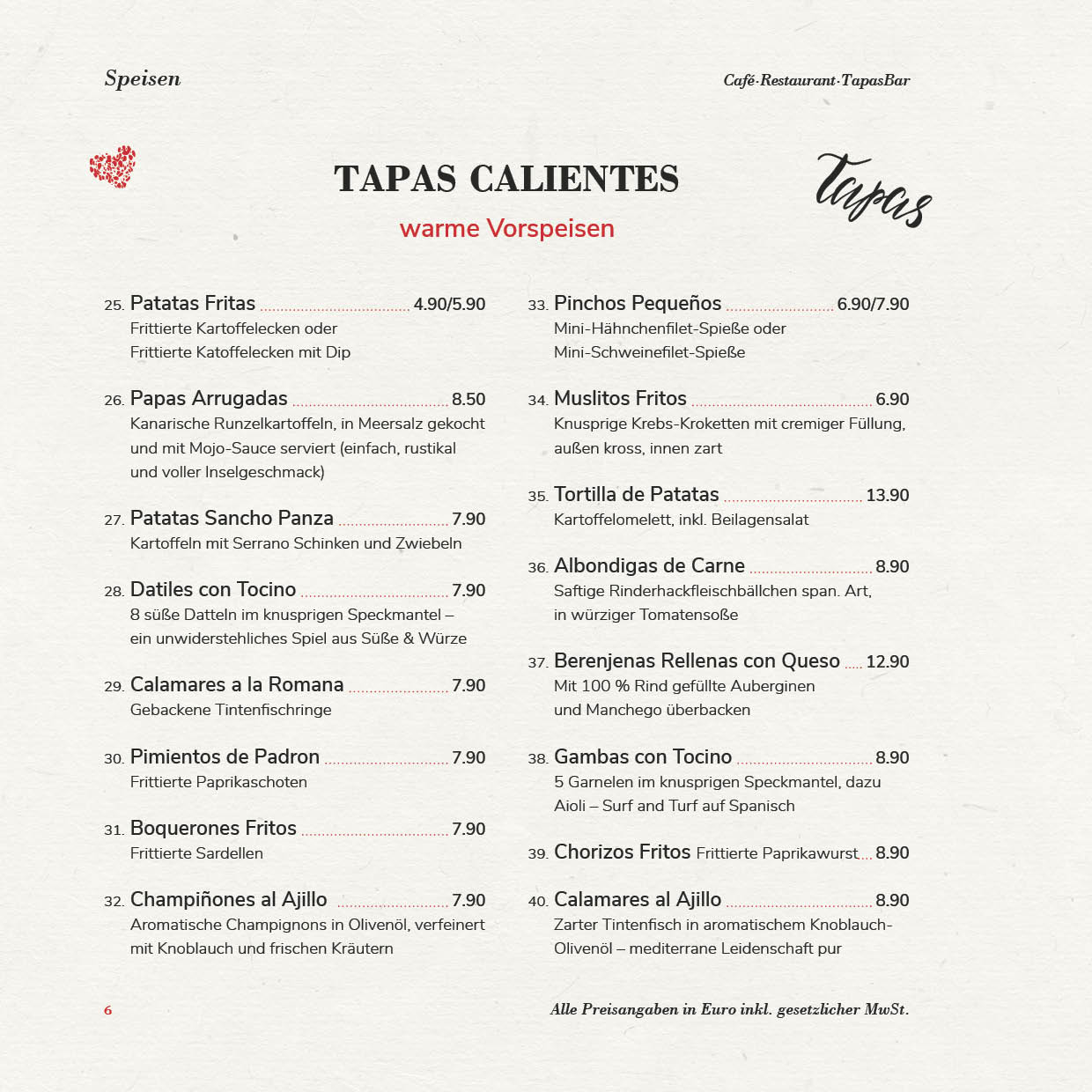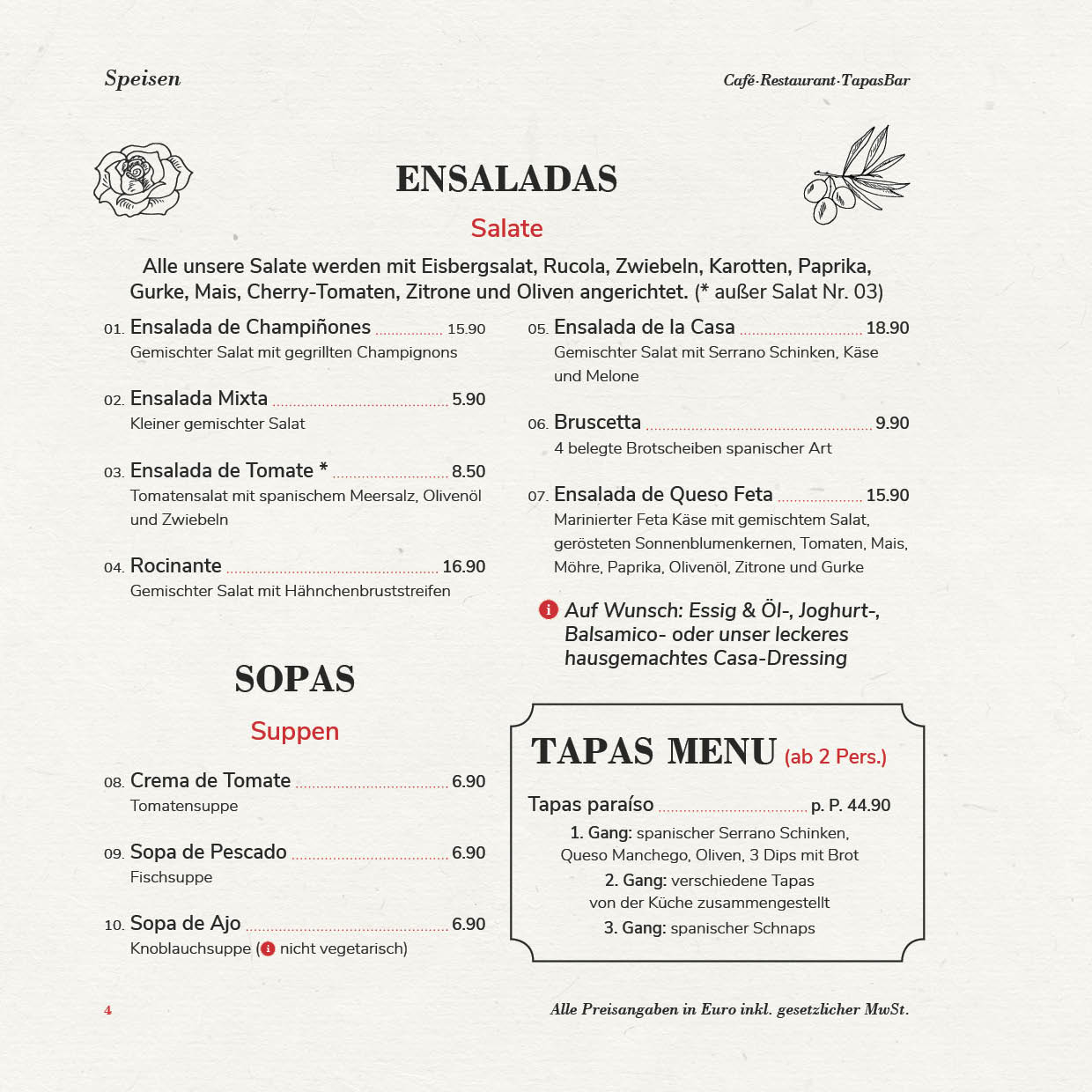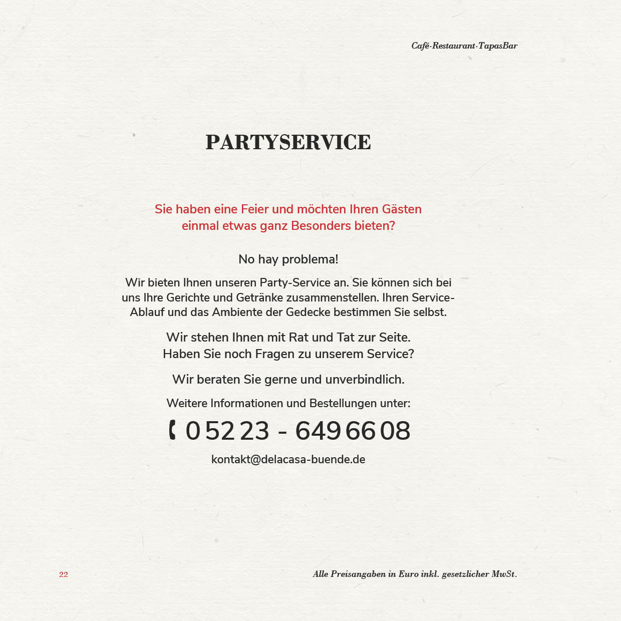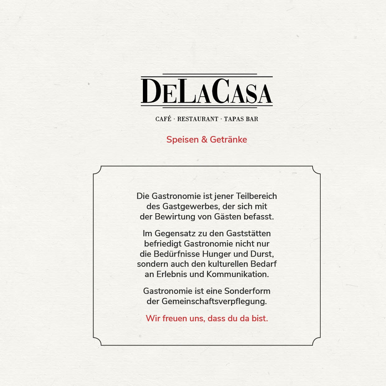In unserer „Casa“ möchten wir Ihnen neben einem Café, auch eine Tapas-Bar bieten und Sie herzlich zum Wohlfühlen einladen. Wir möchten für Sie nicht nur ein Restaurant sein, sondern auch ein kleines spanisches Plätzchen im Herzen von Bünde, bei dem Sie sich wie zuhause fühlen können. Das wollen wir Ihnen auch mit unserem Service und unserer Auswahl beweisen!